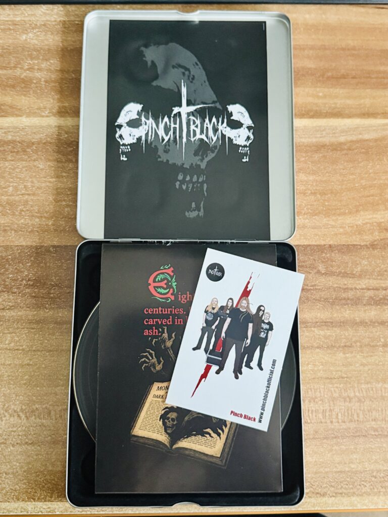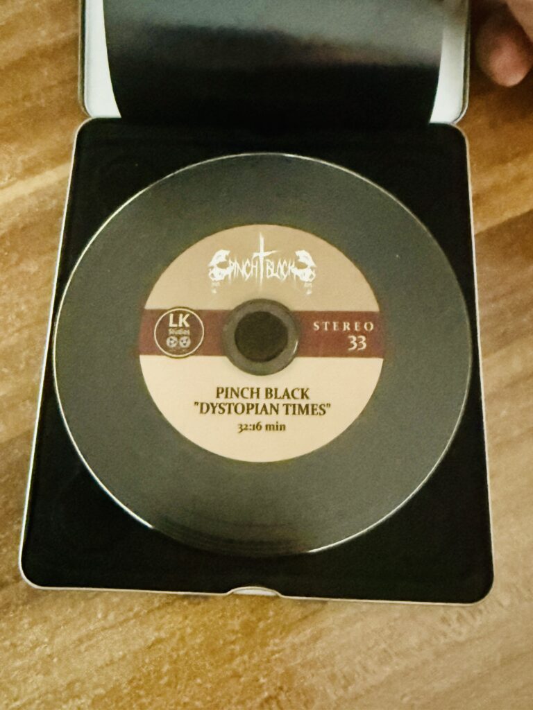 Schon beim Auspacken wird klar: Dystopian Times ist weit mehr als nur ein neues Pinch Black-Album – es ist ein echtes SammlerstĂŒck. Die Band hat sich fĂŒr eine edle Metal-Case-Edition entschieden, die bereits beim ersten Anblick Wertigkeit ausstrahlt. Das Cover mit der stilisierten, comicartigen Darstellung der Band vor einer dĂŒsteren Sonnenfinsternis greift das dystopische Konzept perfekt auf: modern, kantig und mit einem Hauch Retro-AttitĂŒde, der an alte Thrash-Artwork-Zeiten erinnert.